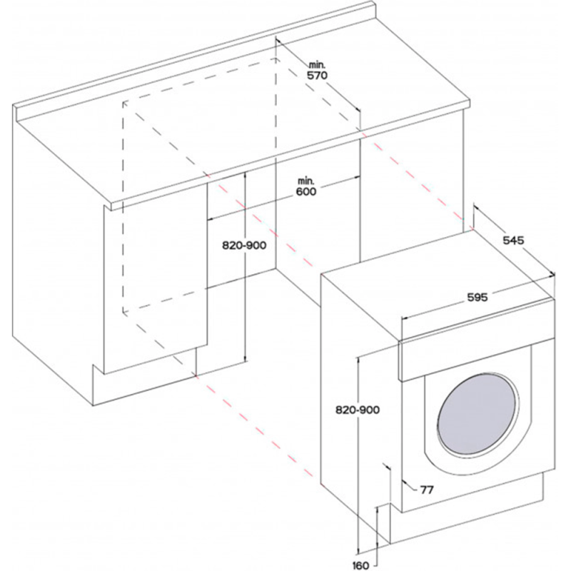 | Глибина для вбудовування | 570 мм |