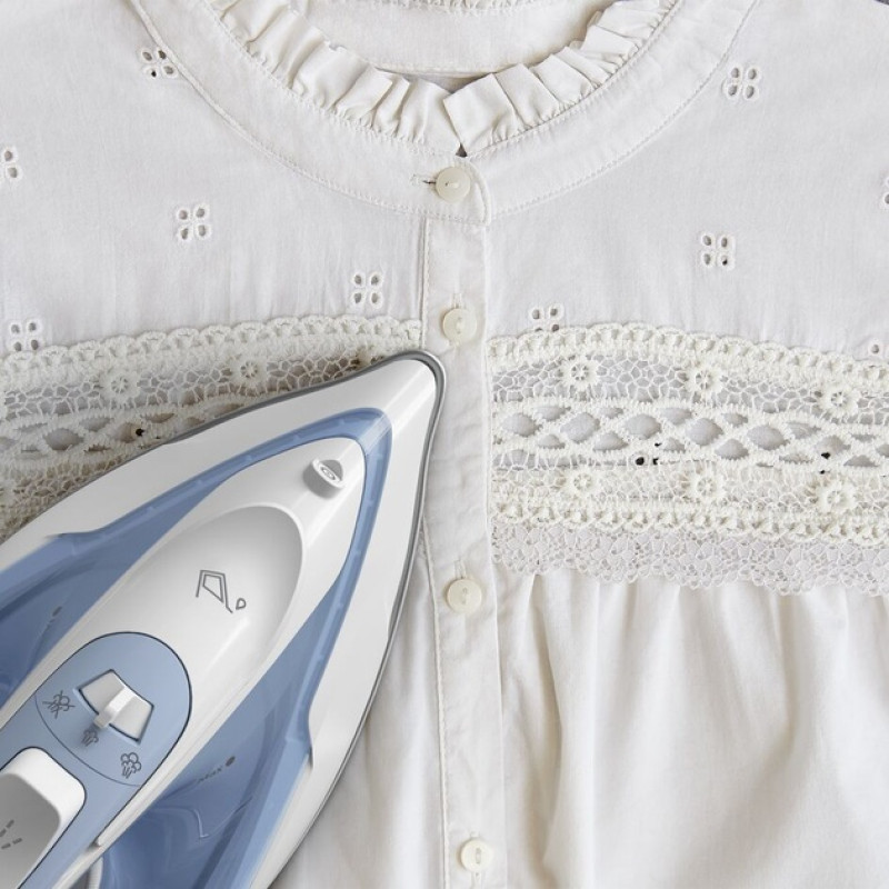 Підошва праски має загострений наконечник, що забезпечує безперешкодне прасування, дозволяючи легко дістатися до важкодоступних місць, таких як вузькі краї, шви та коміри.