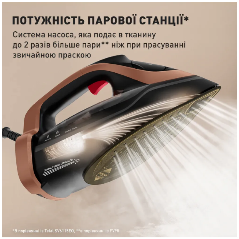 | Функції | Автовідключення, Система самоочищення, Система "крапля-стоп", Вертикальне відпарювання |