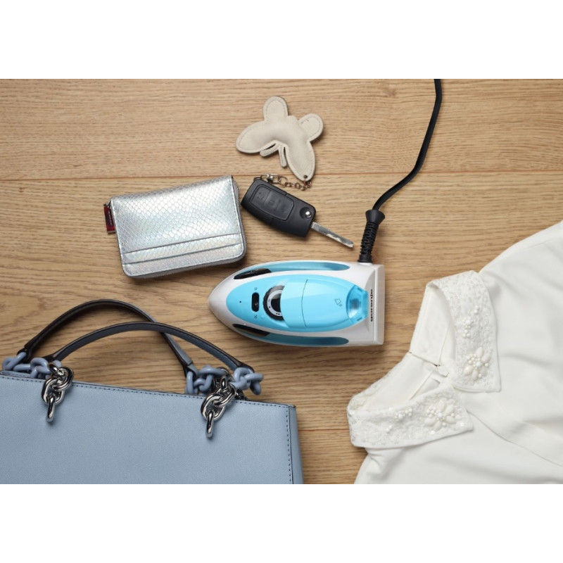 Ця компактна праска - справжній турист, здатний працювати в мережі на 240 або 120 Вольт. Гострий носик дозволяє розгладжувати тканину навколо гудзиків, коміри, манжети та лацкани.