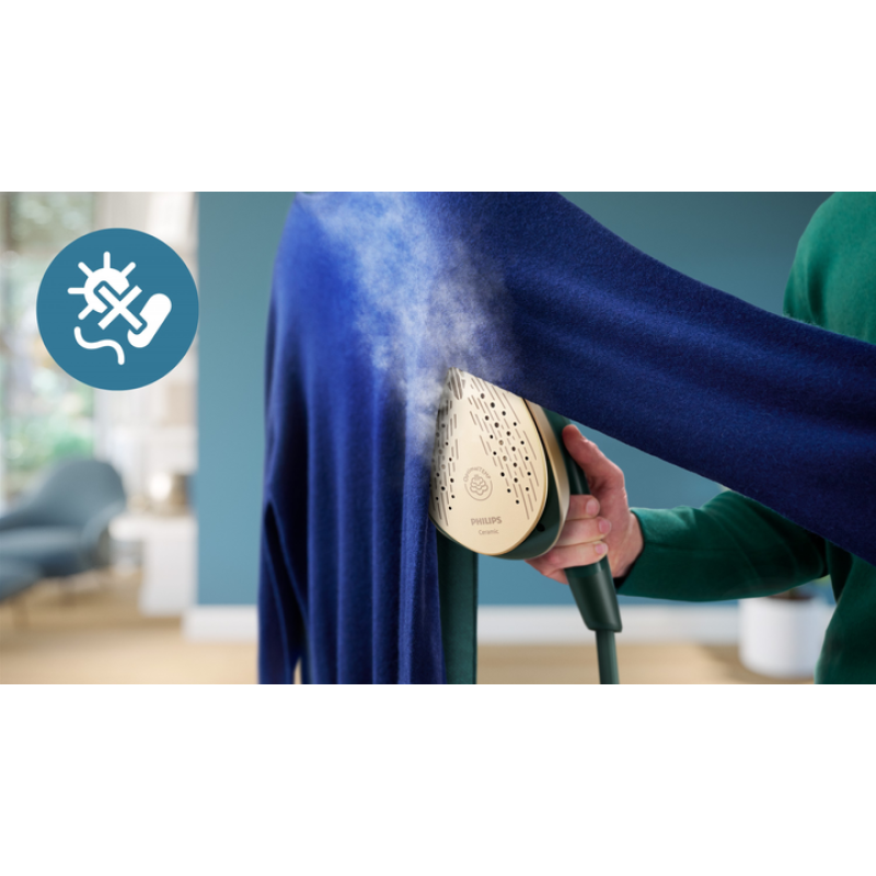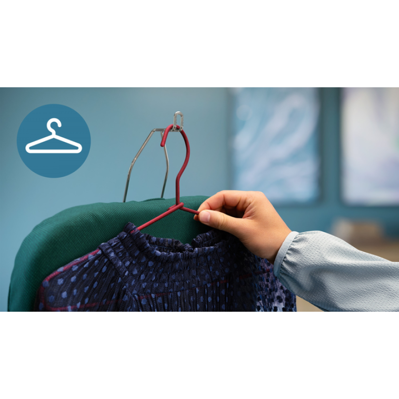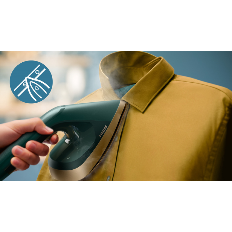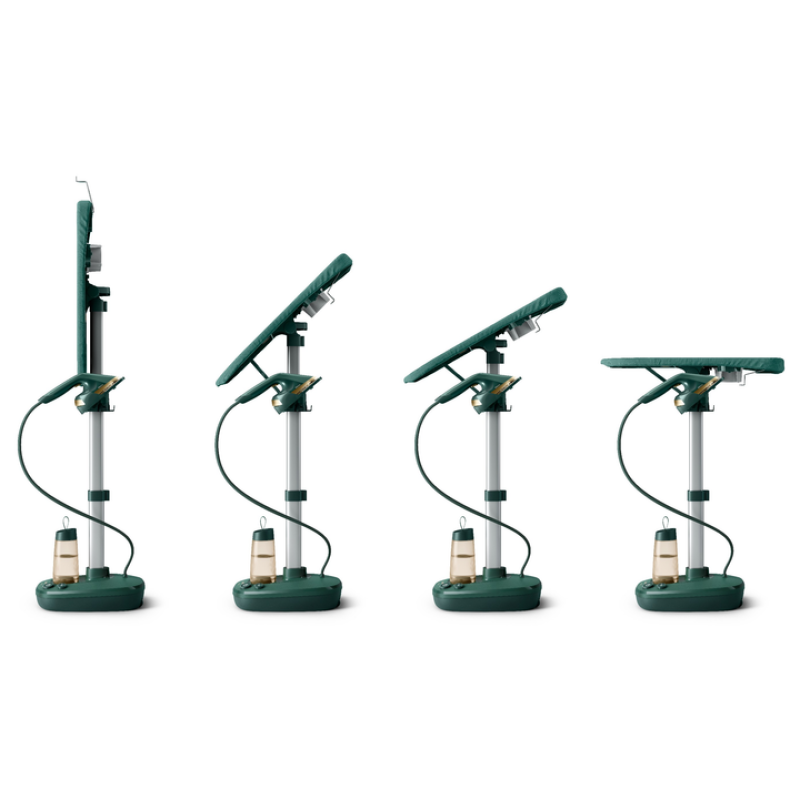 | Особливості | Вбудована багатокутна регульована прасувальна дошка з конічним наконечником Багатопозиційна док-станція: праворуч і зверху від прасувальної дошки Головка iron+ із загостреним кінчиком Праска готова до роботи лише за 80 секунд |