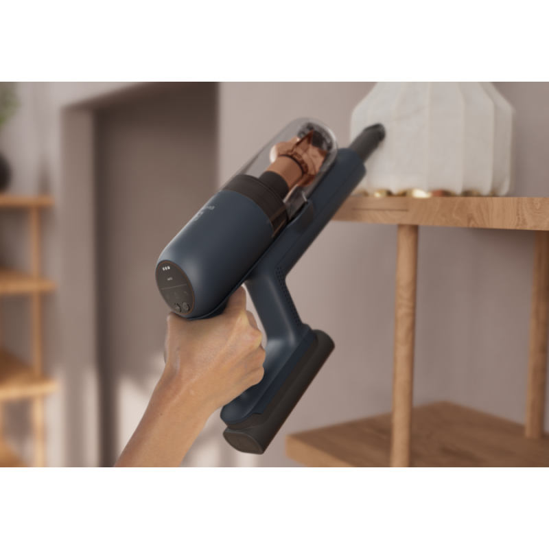 Наш легкий потужний бездротовий очисник вагою 2.2 кг значно полегшує роботу. Завдяки ергономічній компактній конструкції ви можете легко прибирати від підлоги до стелі.