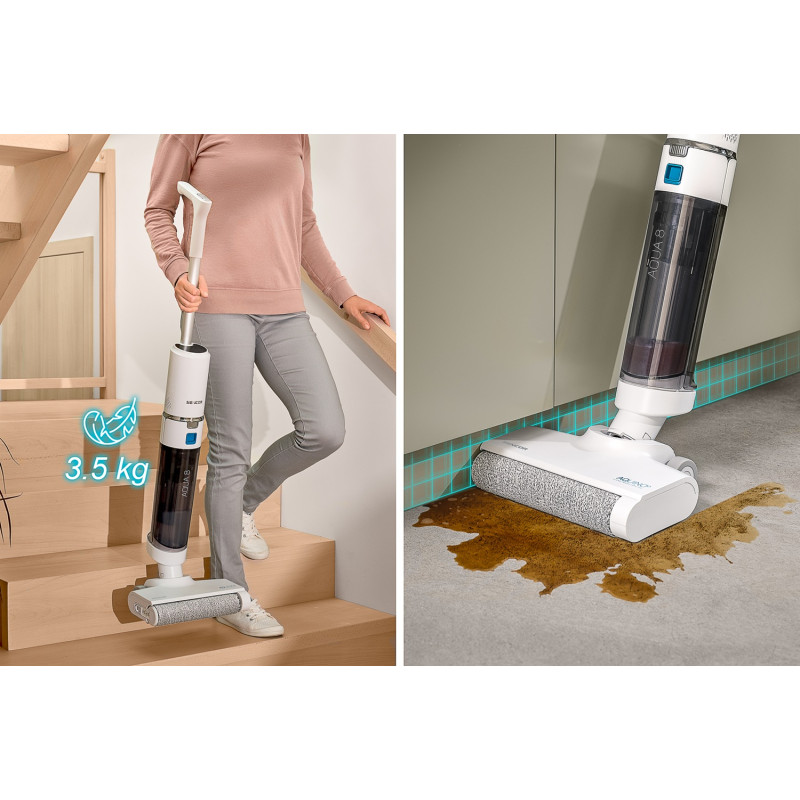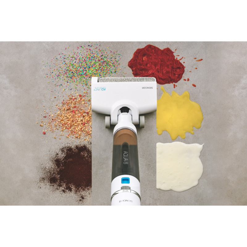 Незважаючи на всі ваші зусилля, чистота вашої підлоги вас все одно не влаштовує? Змініть правила гри за допомогою машини для підлоги мийки Sencor SVW 5010WH AQUINO. Потужний цифровий електродвигун з силою всмоктування до 11 000 Па і технологія Wet & Dry дозволяє даній машині підлогомийної справлятися з будь-яким забрудненням, будь то сухе або вологе. Power Spin Aqua 8 забезпечує відмінний результат під час миття завдяки високій швидкості обертання щітки. Особлива конструкція щітки також дозволяє мити підлогу впритул до стіни. Машина оснащена двома окремими ємностями для чистої та брудної води. Функція самоочищення Self-Cleaning виконує обслуговування машини за вас із автоматичним сушінням гарячим повітрям у зарядній станції. До 25 хвилин роботи на одній зарядці. Ще однією перевагою стане підтримка швидкої зарядки. Вам також припадуть до вподоби компактна конструкція і невелика вага всього лише 3,5 кг.