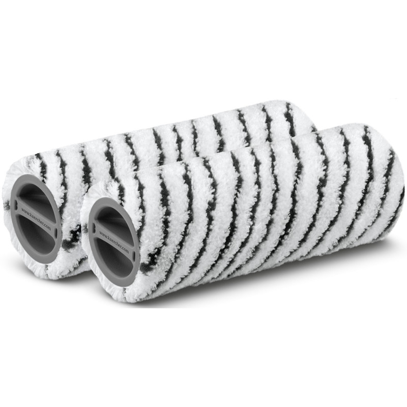 Комплект з двох роликових падів для кам'яних підлог Karcher - це ідеальний інструмент для ретельного очищення нечутливих твердих покриттів. Завдяки нейлоновій щетині і абразивним смужках, набір роликів дуже легко видаляє стійкі забруднення, в тому числі з швів між плитками. Припускають очищення в пральній машині при температурі до 60 °C.