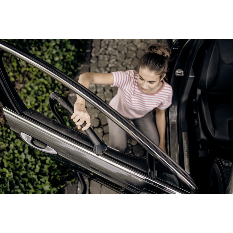 Спеціальний комплект щіток для прибирання в салоні автомобіля і не тільки. Насадка-щітка з жорсткою щетиною забезпечує ретельне очищення килимків і оббивки сидінь, а з м'якою - обережну очищення чутливих поверхонь (наприклад, щитка приладів і центральної консолі). Підходять для прибирання твердих поверхонь в гаражах, майстернях. Для збору пилу, деревини, стружки, дрібного сміття.