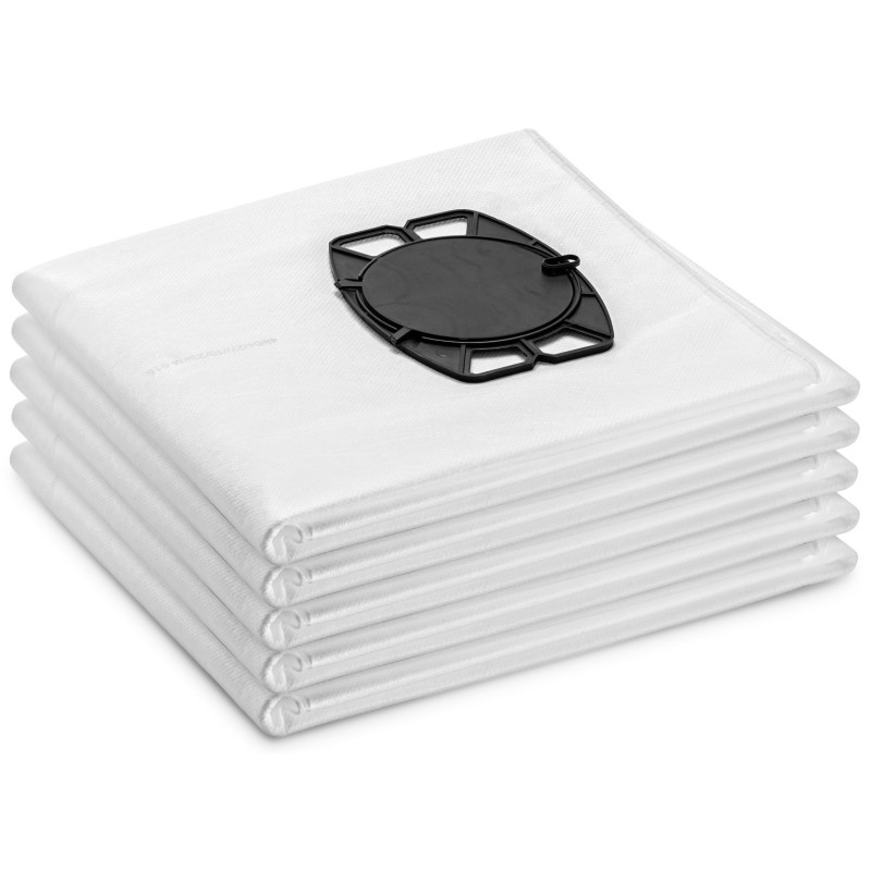 Стандартні фільтр-мішки для пилососів Kärcher призначені для вологого та сухого прибирання у професійному середовищі. Вони виготовлені з нетканого 3-шарового матеріалу та сертифіковані за класом пилу M. Забезпечують високу ефективність фільтрації під час збору великого сміття і дрібного пилу. Комплект містить 5 мішків.