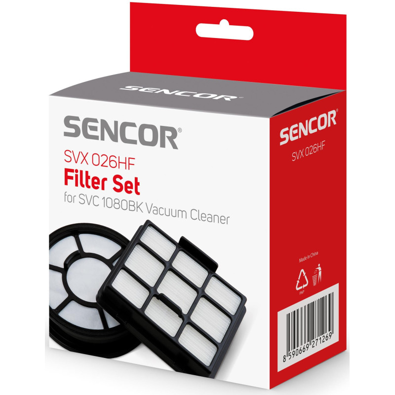 Комплект фільтрів Sencor SVX026HF (вхідний мікрофільтр + HEPA H13) для пилососа SVC 1080TI. Можна мити та використовувати повторно.