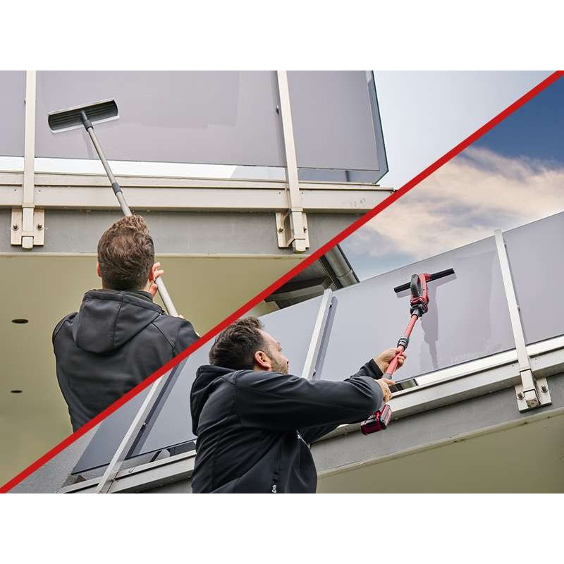 Набір телескопічних штанг є аксесуаром для акумуляторного пристрою для миття вікон Einhell BRILLIANTO, який полегшує миття високих вікон (наприклад, оранжереї,вітрини). Він складається з двох телескопічних штанг (1x мікрофібра, 1x Brillianto), кожне з яких можна плавно регулювати до прибл. 120 см.