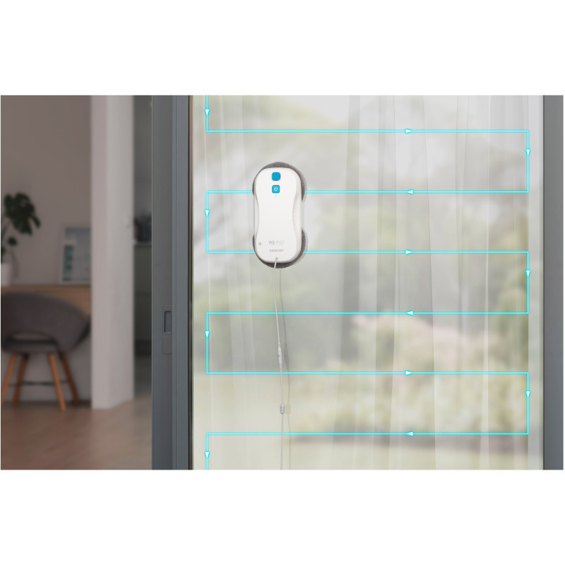 Робот для миття вікон Sencor SRW6010WH використовується для автоматичного очищення скляних поверхонь у приміщеннях. Два обертові диски з мікрофібровими накладками виконують механічне очищення скла. Вбудований резервуар для води та дві ультразвукові форсунки забезпечують автоматичне зволоження поверхні під час миття. Навігаційна система контролює рух пристрою по склу та визначає межі поверхні.