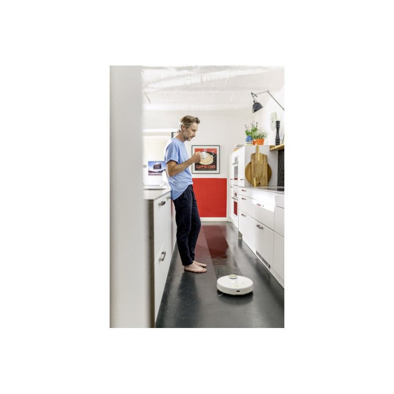 Інтелектуальний робот-пилосос Karcher RCV 3 самостійно очищає тверді покриття для підлоги та килими з коротким ворсом, виконуючи сухе й вологе прибирання. Завдяки навігації з лідаром створює план приміщень, дозволяючи задавати індивідуальні параметри для кожної кімнати, включаючи зони прибирання та виключення. Вбудовані датчики запобігають падінню зі сходів. При низькому заряді акумулятора повертається на базу для підзарядки. Керується кнопкою на корпусі чи через мобільний додаток, де можна налаштувати графік прибирання та отримувати сповіщення про потребу втручання його власника.