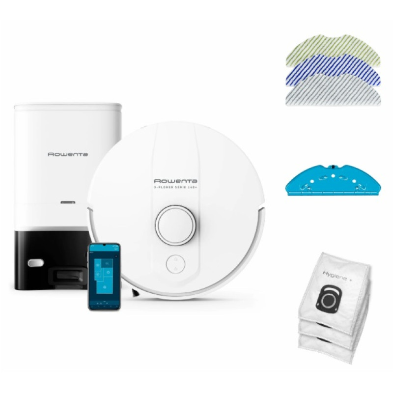 | Комплектація | Робот-пилосос, Насадки з мікрофібри для вологого прибирання (2 шт) і для сухого прибирання (1 шт) , Док-станція зарядки и самоочищення, Змінні мішки (3 шт), Мультитул для чищення, Інструкція, Гарантійний талон |
