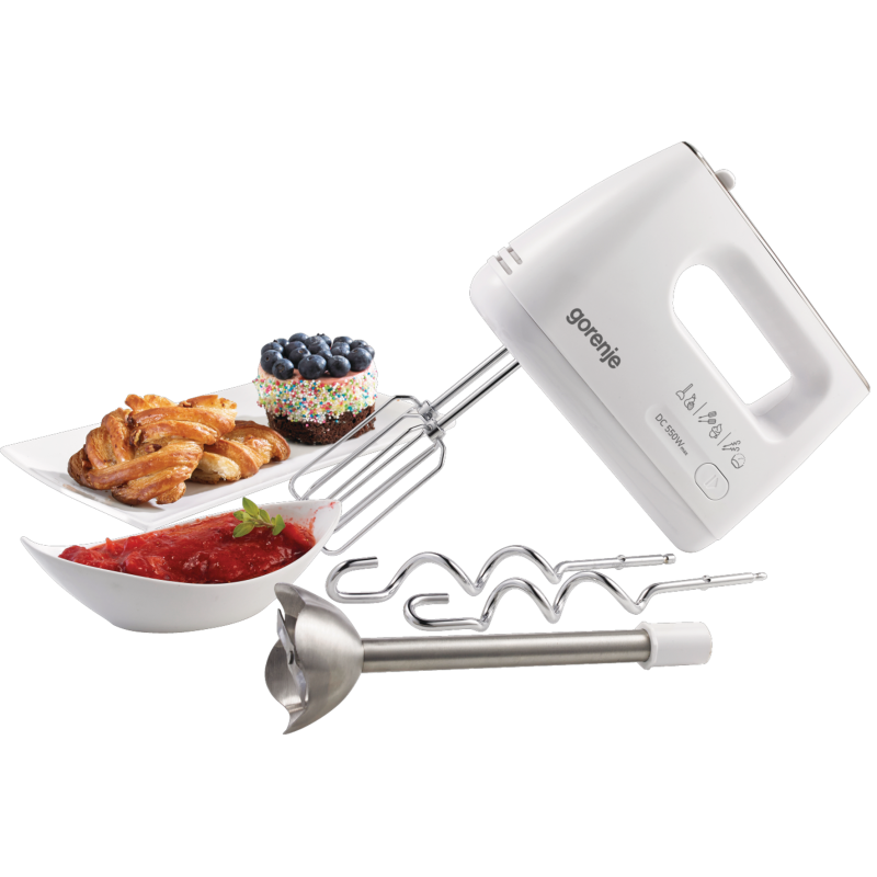 Ці високоякісні міксери призначені для змішування, збивання, вимішування та приготування пюре. До них додаються два вінчики, два гаки для вимішування тіста та насадка-блендер.