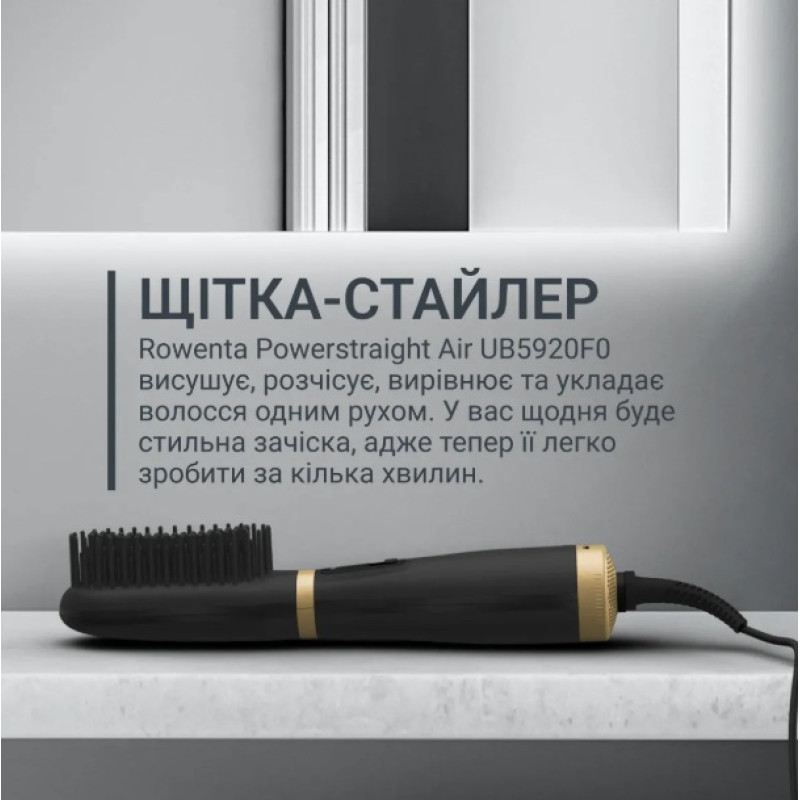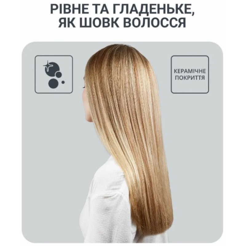 | Особливості | Конструкція 2 в 1 дозволяє одночасно сушити та вирівнювати волосся Максимальна температура нагріву: 210 °C Індикація ввімкнення Компактний розмір |