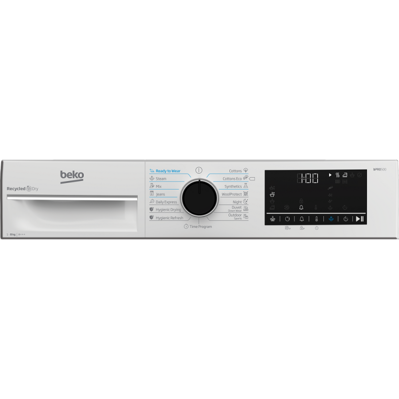 | Програми | Бавовна Бавовна Еко Синтетика Вовна Тихий режим Пухові вироби Верхній одяг / Спортивний одяг Тривалість програми Гігієнічне освіження Гігієнічне сушіння Суперкоротка експрес-програма 14 хв Джинси Змішана Освіження парою Готовні |
