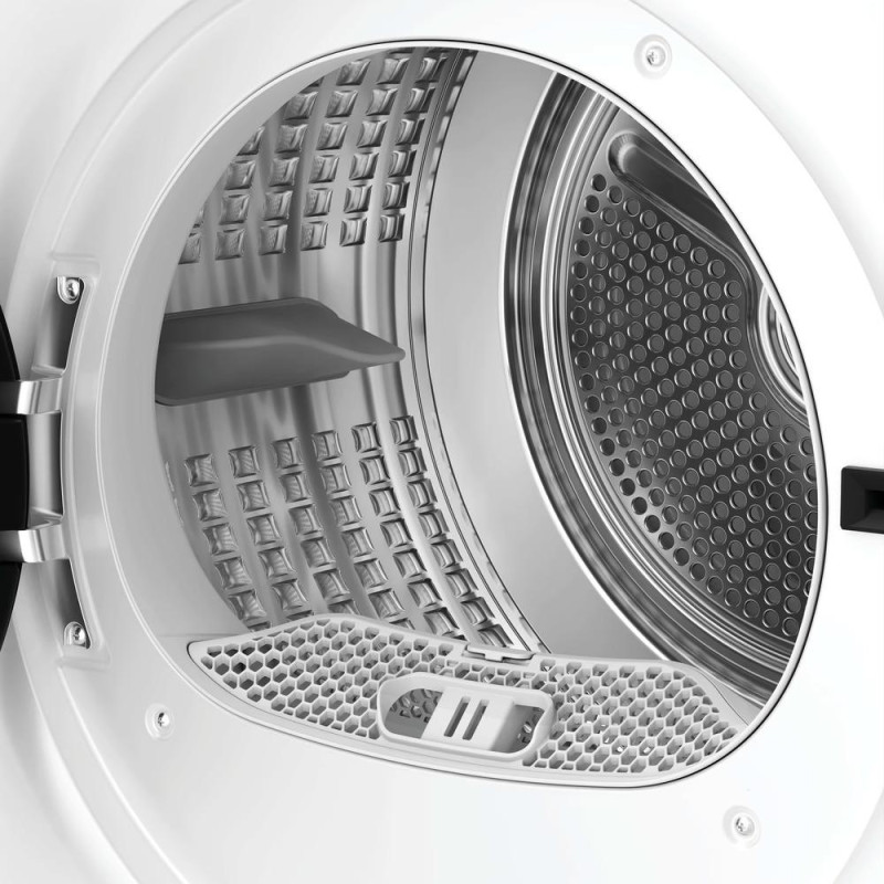 Сушильна машина Candy GDS7N2B-S з тепловим насосом вміщує 7 кг білизни та належить до класу енергоефективності D. Інверторний двигун і реверсивне обертання барабана забезпечують рівномірне сушіння без надмірних складок. 16 програм охоплюють синтетику, вовну, джинси, сорочки, делікатні тканини та швидку сушку 30–45 хвилин, а датчик вологості автоматично визначає ступінь готовності.