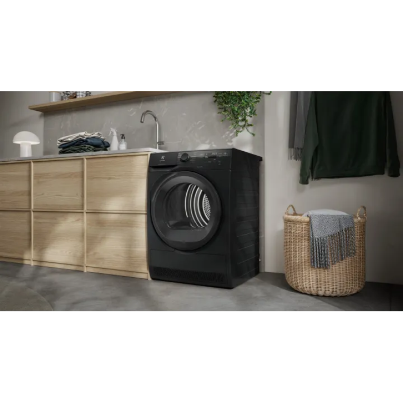 Сушильна машина Electrolux EW7D495UDU з тепловим насосом і класом енергоспоживання A+++ висушує до 9 кг білизни при потужності лише 550 Вт, зберігаючи форму та структуру тканин. Технологія SensiCare вимірює температуру та вологість кожного завантаження і автоматично підлаштовує час та енергоспоживання, запобігаючи перегріву. DelicateCare адаптує температуру й рух барабана для шовку, вовни та інших делікатних матеріалів — сертифіковано Woolmark. Цикл «Гігієна» при температурі понад 60 °C одночасно сушить і знищує 99,9% бактерій та вірусів.