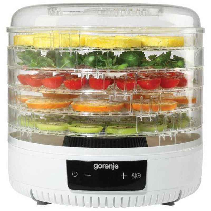 Електросушарка для продуктів дозволить висушити хліб, печиво, рибу, фрукти, трави, м'ясо, гриби, макаронні вироби й овочі зі збереженням усіх корисних властивостей. GORENJE FDK 500 GCW з 5 круглими лотками діаметром 31 см, які дозволяють рівномірно висушувати продукти на всіх рівнях. Лотки легко та просто замінюються.