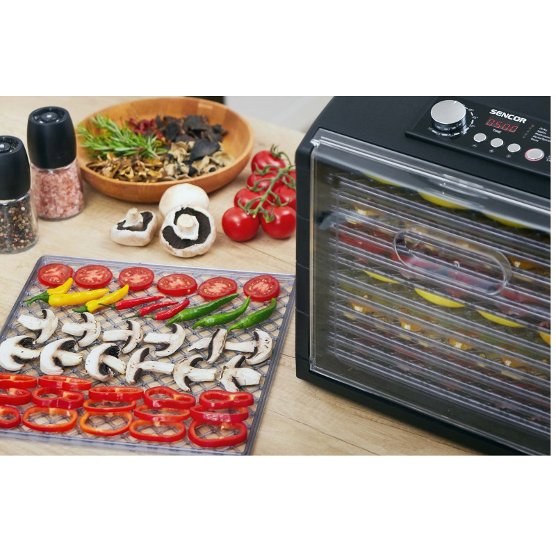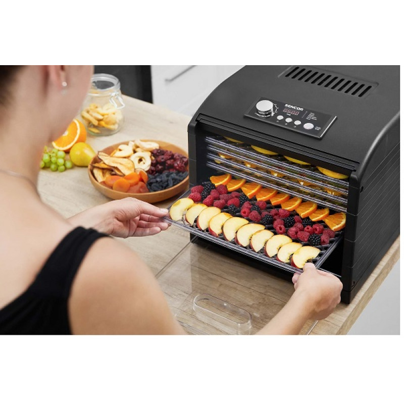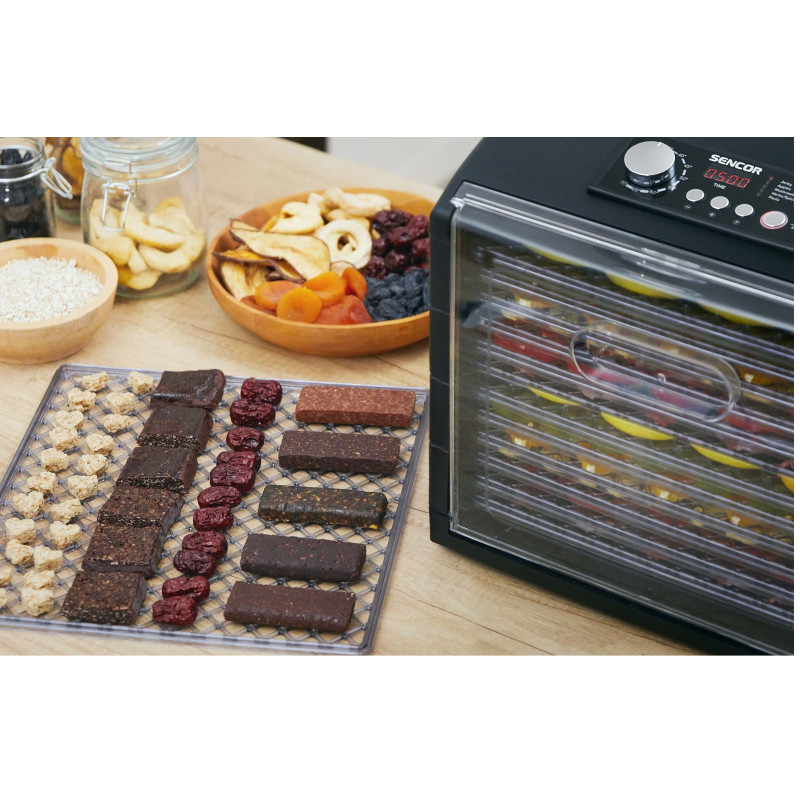 Сушить незліченну кількість різноманітних харчових продуктів вдома. З сушаркою SENCOR SFD 6600BK ви будете точно знати, що сушите без зайвих консервантів і додаткового цукру, заощаджуючи кошти та час. Сушарка створює якісні делікатеси, чаї, спеції та снеки, найвищої якості з харчових продуктів, які ви оберете самі.