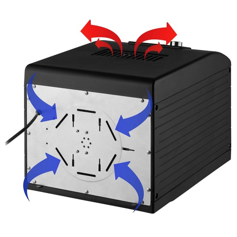 Завдяки технології Horizontal Air Flow тепле повітря проходить горизонтально по всій сушці, що дозволяє змінювати таці не вимикаючи процес сушіння.
