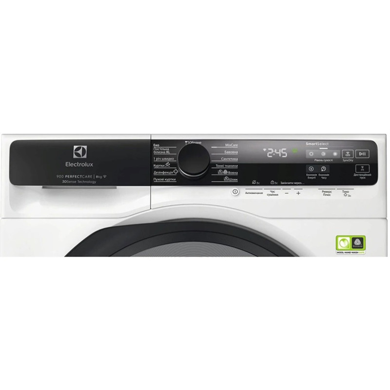| Програми | MixCare Бавовна Синтетика Тонкі тканини Вовна Шовк Пухові куртки Дезінфекція Куртки 1 річ швидко Постільна білизна XL Еко |