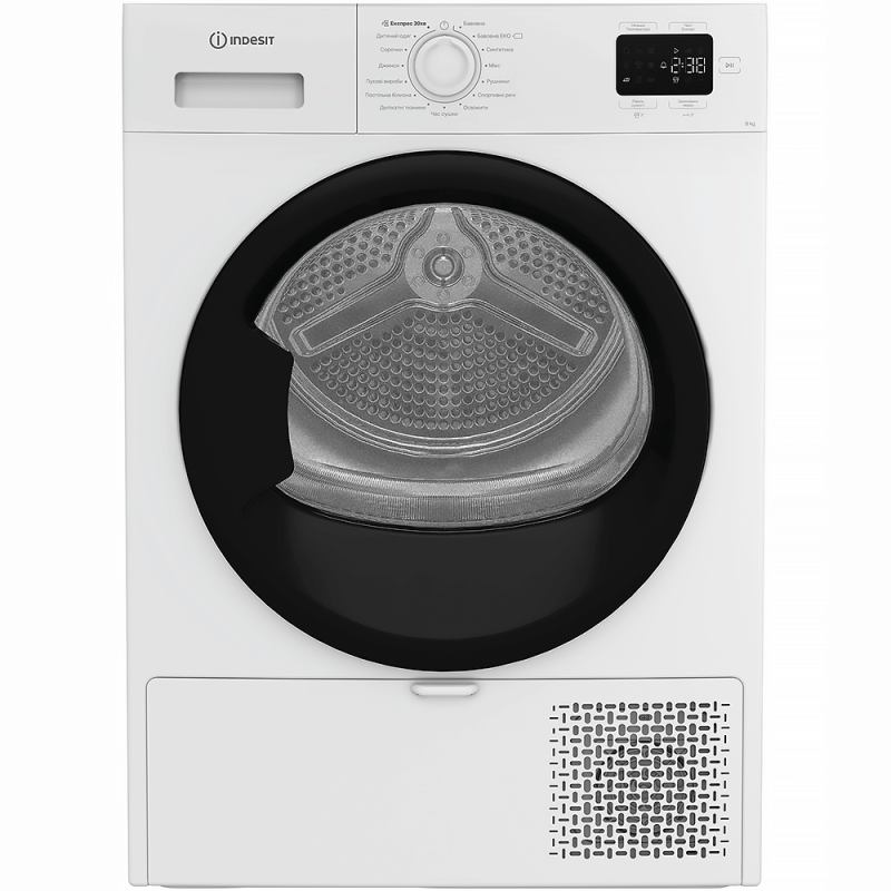 Сушильна машина Indesit CYSD82DWBUA оснащена технологією теплового насоса та розрахована на завантаження до 8 кг білизни. Вона підтримує 15 програм сушіння для різних типів тканин, включно з делікатними та повсякденними речами. Дисплей спрощує вибір налаштувань і контроль процесу. Функція антизминання допомагає зменшити складки після завершення циклу. Компактна глибина дозволяє зручно розмістити прилад у побутовому просторі.