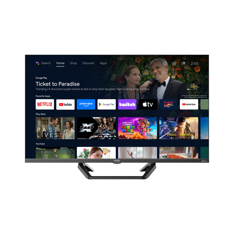 QUANTUM DOT МАГІЯ КВАНТІВ З ТЕХНОЛОГІЄЮ QUANTUM DOT Спеціальний шар з квантових точок трансформує звичайне світло в майже безкінечну кількість відтінків і градацій, створюючи небачену раніше глибину та насиченість кольорової палітри на екрані телевізора. Спеціальний шар з квантових точок трансформує звичайне світло в майже безкінечну кількість відтінків і градацій, створюючи небачену раніше глибину й насиченість кольорової палітри на екрані телевізора. Ліцензійна операційна система від Google з миттєвим доступом до безлічі застосунків та стрімінгових сервісів - це просто, зручно, безпечно! Ліцензійна операційна система від Google з миттєвим доступом до безлічі застосунків і стрімінгових сервісів - це просто, зручно, безпечно! Завдяки технології dbx-tv компактні динаміки телевізора ERGO відтворюють звук високої якості на рівні великих аудіосистем, гарантуючи чистоту, потужність і насиченість звукової картини. Завдяки технології dbx-tv компактні динаміки телевізора ERGO відтворюють звук високої якості на рівні великих аудіосистем, гарантуючи чистоту, потужність та насиченість звукової картини. Цілий набір технологій, що входить до пакету Dolby Audio, забезпечує неймовірний реалізм у телепрограмах, фільмах та іграх, огортаючи глядача об’ємним і потужним звучанням. Цілий набір технологій, що входить до пакету Dolby Audio, забезпечує неймовірний реалізм в телепрограмах, фільмах та іграх, огортаючи глядача об’ємним і потужним звучанням. Найлегший спосіб миттєво вивести будь-який вміст смартфона чи планшета на екран телевізора ERGO. Найлегший спосіб миттєво вивести будь-який вміст смартфона чи планшета на екран телевізора ERGO. ГОЛОСОВЕ