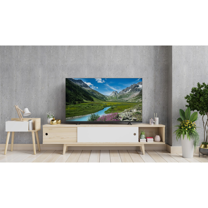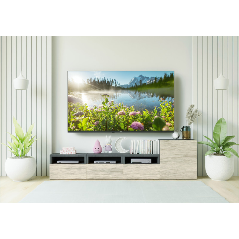 ТАК І НА СТІНІ Цей телевізор має як елегантні ніжки, так і спеціальні отвори під навісний кронштейн для привабливого та компактного розміщення на стіні. ІДЕАЛЬНИЙ ВИГЛЯД