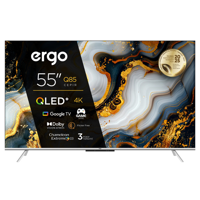 CHAMELEON EXTREME 3.0 Інноваційний графічний процесор Chameleon Extreme 3.0 з підтримкою штучного інтелекту в рази покращує практично будь-яке вхідне зображення, забезпечуючи глядача високоякісним контентом з високою роздільною. НЕЙМОВІРНО ОБ’ЄМНИЙ ЗВУК ІЗ Аудіосистема телевізора ERGO з підтримкою Dolby Atmos заповнює потужним, чистим та об’ємним звуком кожен кубічний сантиметр простору кімнати, посилюючи відчуття реалізму та присутності на місці подій. НЕЙМОВІРНО ОБ’ЄМНИЙ ЗВУК ІЗ Аудіосистема телевізора ERGO з підтримкою Dolby Atmos заповнює потужним, чистим та об’ємним звуком кожен кубічний сантиметр простору кімнати, посилюючи відчуття реалізму й присутності на місці подій. КОНТЕНТ БЕЗ МЕЖ – Усе в одному місці! КОНТЕНТ БЕЗ МЕЖ – Усе в одному місці! ЕРГОНОМІЧНИЙ ПУЛЬТ