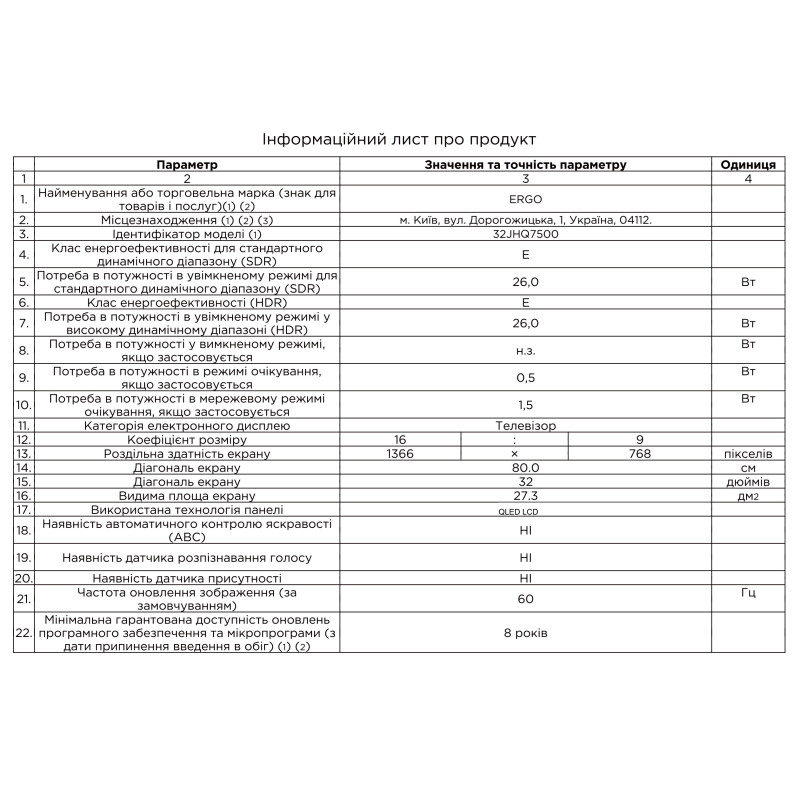 | Діагональ, дюйм | 32 |