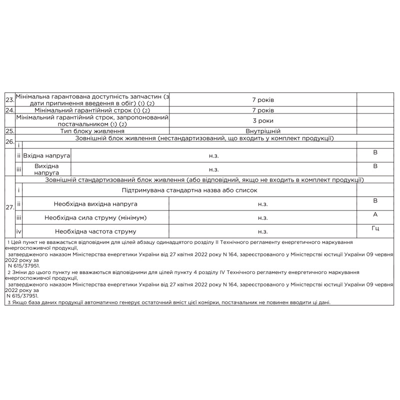 | Клас енергоспоживання | E |