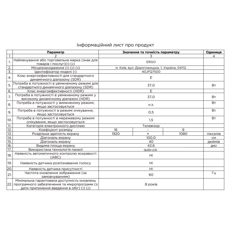 | Діагональ, дюйм | 40 |