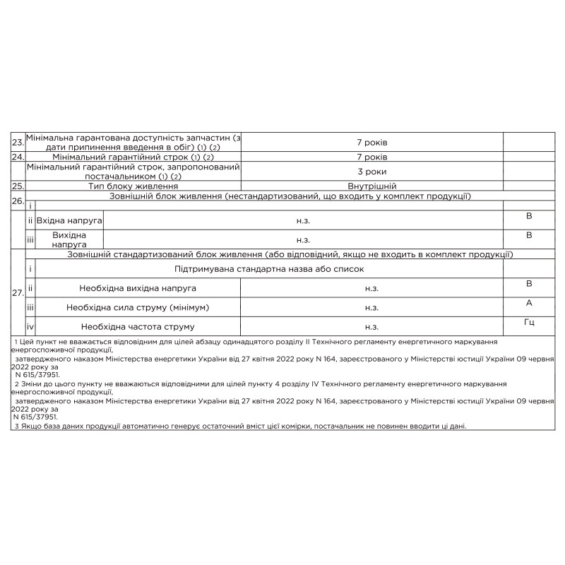 | Клас енергоспоживання | E |