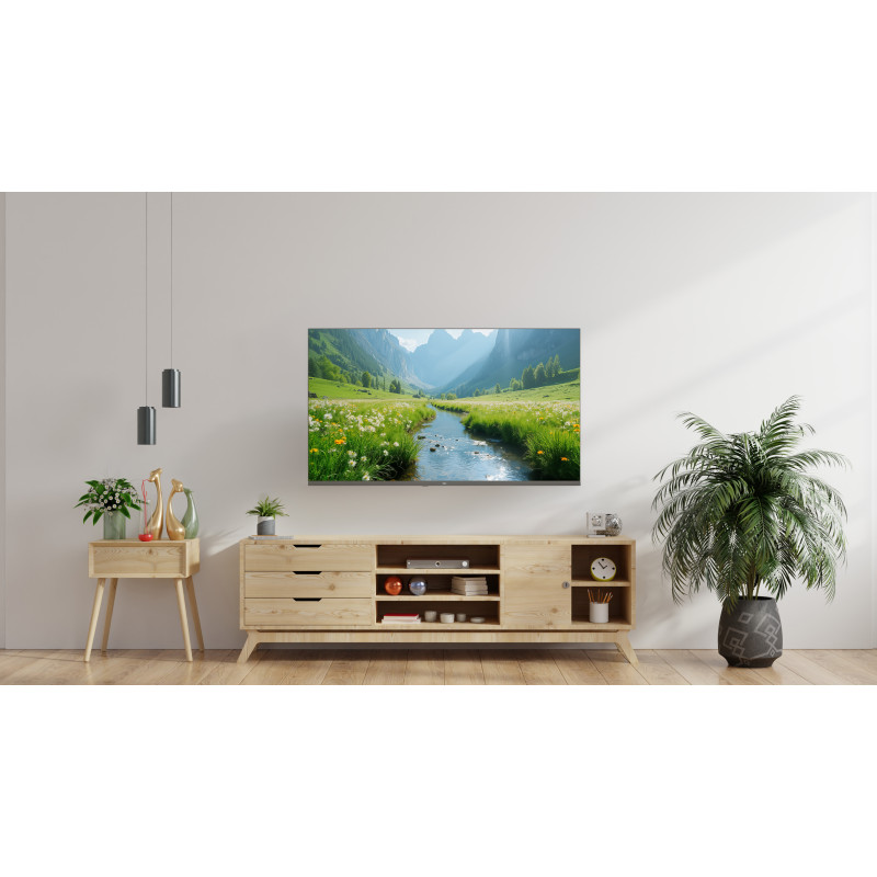 ТАК І НА СТІНІ Цей телевізор має як елегантні ніжки, так і спеціальні отвори під навісний кронштейн для привабливого та компактного розміщення на стіні. ІДЕАЛЬНИЙ ВИГЛЯД