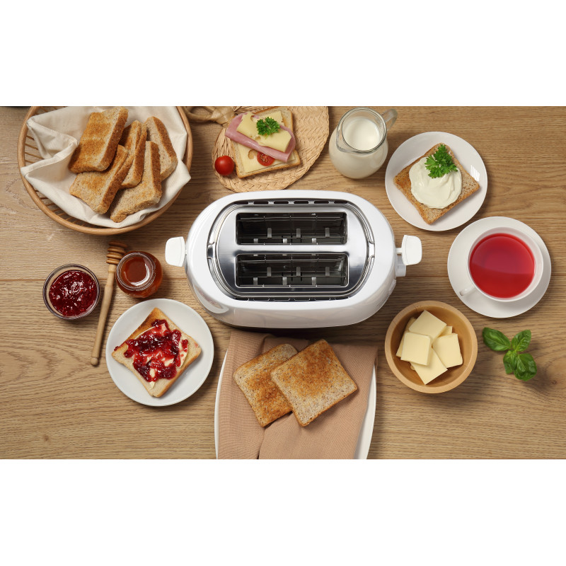 Тостер Gorenje T850WE здатний не тільки відмінно впоратися зі своїми завданнями, але і стати прекрасним доповненням до інтер'єру кухні, завдяки своєму елегантному стильному дизайну. Gorenje T850WE має добре продуману і якісно виконану конструкцію, з потужністю нагрівального елементу 850 Ватт. У ньому передбачено безліч функцій, які полегшать роботу з приладом, одночасно підвищивши його ступінь безпеки. У процесі експлуатації ви зможете скористатися функціями підігріву та розморожування, автоматичним підняттям тостів, двостороннім обсмажуванням і підігрівом хліба, а також встановити 1 з 7 режимів нагріву, вибравши ступінь підрум'янення. Крім цього, у Gorenje T850WE є індикація роботи, підсвічування кнопок, термоізольований корпус з функцією автоматичного вимкнення та висувний піддон для крихт.