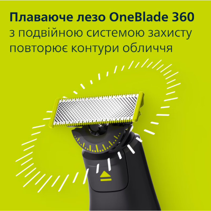| Особливості | OneBlade Інноваційне лезо, що рухається на 360° Індикатор зарядки Світлодіодний цифровий дисплей Двостороннє лезо для точності та контролю |