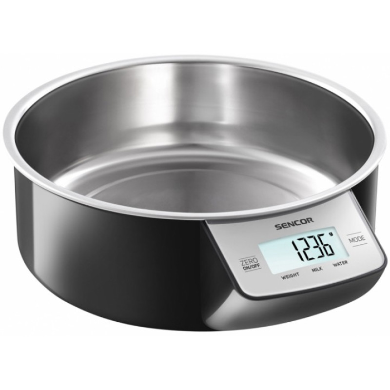 Кухонні ваги Sencor SKS 4030 BK зі знімною чашею. Поєднання стильного дизайну та функціональності. Чаша терезів знімна, виконана з нержавіючої сталі для легкого догляду. Крім стандартного зважування, на цих терезах можна автоматично відображати на дисплеї об'єм молока або води. При зважуванні ви можете вибрати одиниці виміру (метричні або англійські) на нижній частині ваг за допомогою перемикача одиниць виміру. Великий РК дисплей з підсвічуванням відображає не тільки вагу продуктів, а також задані параметри для зважування.