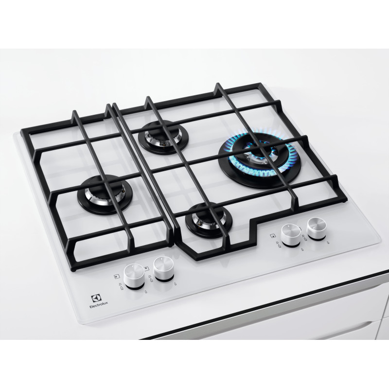 Варильна поверхня Electrolux газова на склі, 60см, чавун, білий