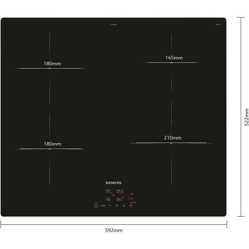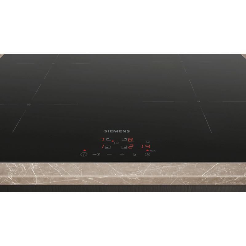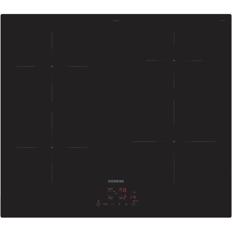 Індукційна варильна поверхня Siemens EU611BEB5E оснащена сенсорним керуванням touchControl із 17 рівнями потужності для точного регулювання нагріву. Функція powerBoost збільшує потужність конфорок на 50%, прискорюючи приготування. Функція quickStart автоматично визначає активну конфорку, а reStart дозволяє відновити налаштування протягом 4 секунд після випадкового вимкнення. Двоступеневий індикатор залишкового тепла, блокування від дітей та автоматичне захисне відключення забезпечують безпеку. Підтримує обмеження споживаної потужності (powerManagement). Безрамковий дизайн ідеально впишеться в сучасну кухню.