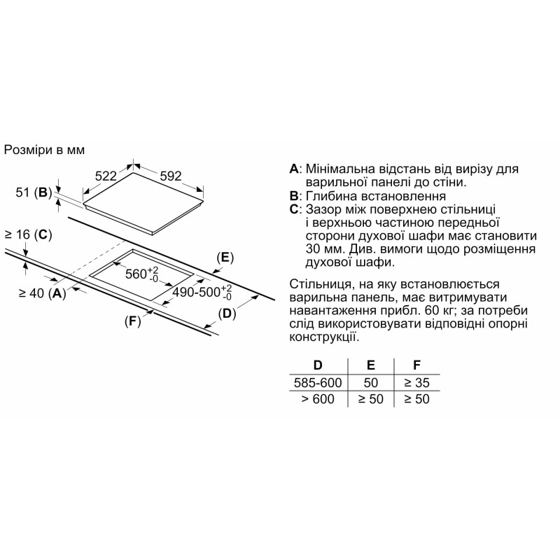| Розміри для вбудовування | 5.1 /x 56 x 49-50 см (ВхШхГ) |
