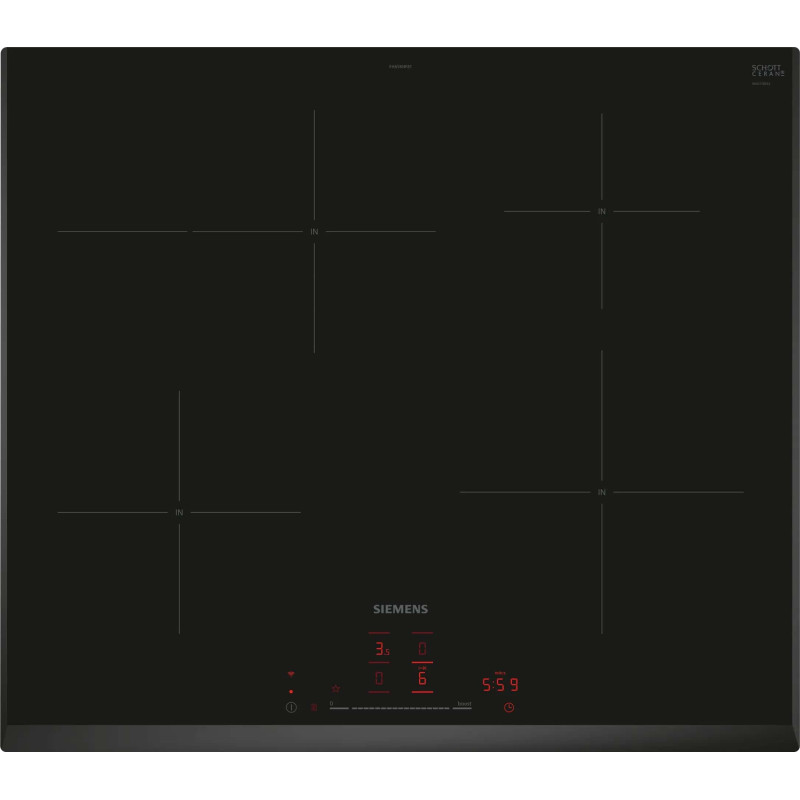 Індукційна варильна поверхня Siemens EH65KHFB1E має 17 рівнів потужності для точного регулювання нагріву. Функція powerBoost прискорює нагрівання на 50%, а quickStart автоматично визначає активну конфорку. reStart дозволяє відновити налаштування після випадкового вимкнення. Безпека забезпечується двоступеневим індикатором залишкового тепла, блокуванням від дітей та автоматичним відключенням. Дизайн зі скошеними профілями без металевого декору. Функція powerManagement дозволяє обмежити споживану потужність за потреби.
