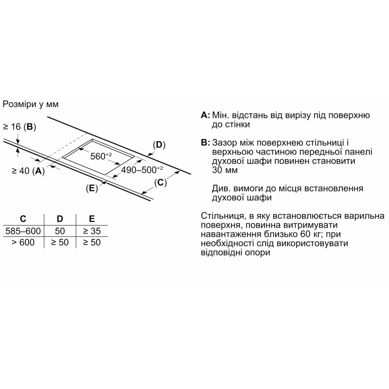 | Розміри для вбудовування | 5.1 /x 56 x (49 - 50) см (ВхШхД) |