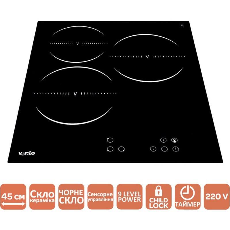 | Характеристики конфорок | 2 великих 200 мм по 1,8 кВт; 1 середня 165 мм по 1,2 кВт |