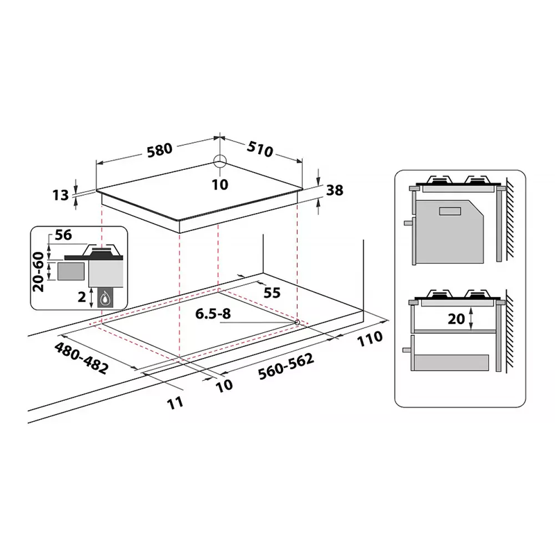 Тип поверхні: Газова Покриття: Нержавіюча сталь Кількість конфорок: 4 шт Розмір (Ш х В х Г): 58 x 5.6 x 51 см