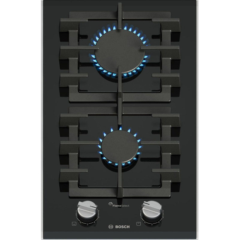 Bosch PRB3A6I40 — компактна 30-см газова доміно-панель на чорній склокераміці з двома потужними конфорками та окремими чавунними решітками. Автоматичний электрозапал, термоелектричний захист від витоку газу, заводське налаштування на природний газ 20 мбар + повний комплект форсунок для балонного газу. Ідеальне рішення для невеликих кухонь або комбінації з іншими доміно-модулями Bosch.