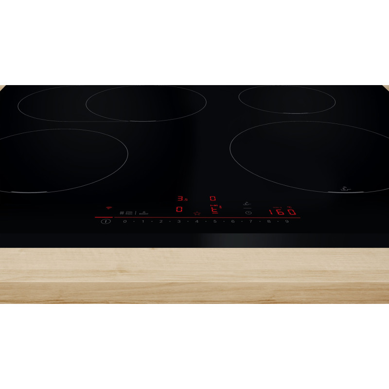 Індукційна варильна поверхня Bosch PIF651HC1E забезпечує точне нагрівання завдяки 17 рівням потужності та сенсору PerfectFry Plus для ідеального смаження. Оснащена Home Connect для дистанційного керування, функціями PowerBoost і розширення зони нагрівання. Для безпеки передбачено блокування від дітей, автоматичне вимкнення та індикацію залишкового тепла. Зручний дисплей DirectSelect робить керування простим і інтуїтивним.
