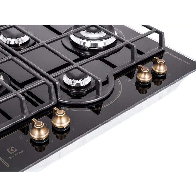 Варильна поверхня Electrolux газова на склі Rococo, 60см, чавун, чорний