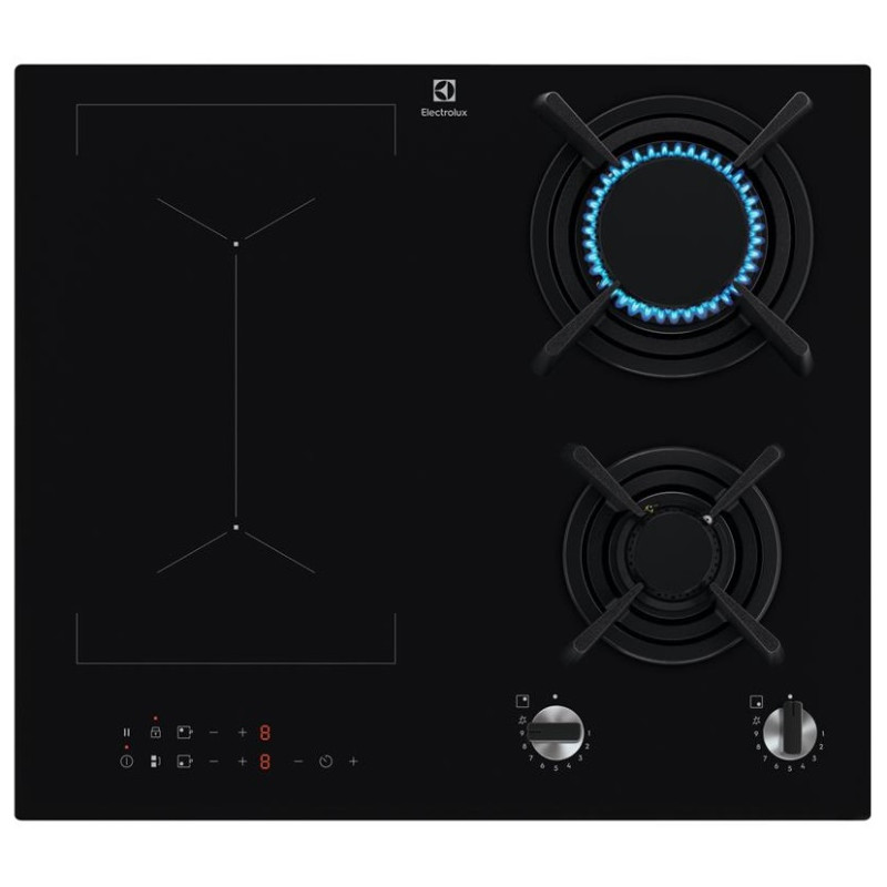 Варильна поверхня Electrolux комбінована (2 газ + 2 інд), 60см, розширена зона, чавун, чорний