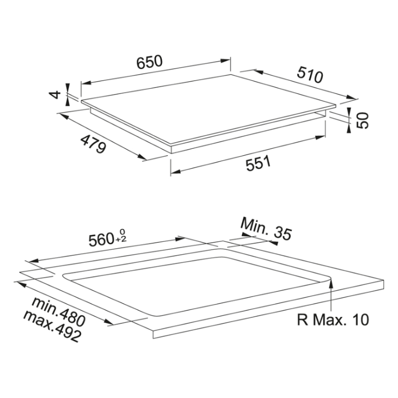| Розміри для вбудовування | 560–590 × 490–510 |
