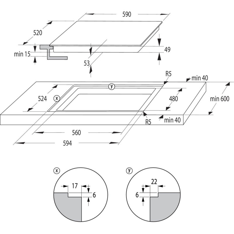 | Розміри для вбудовування | 56-56.4 × 3 × 48 |