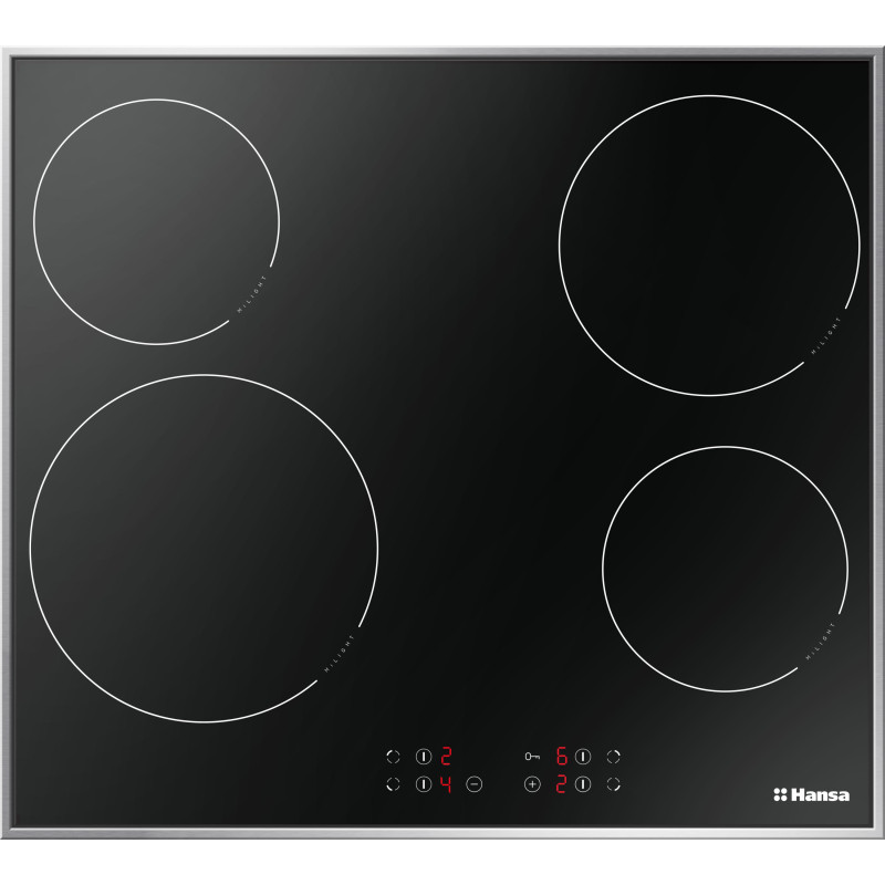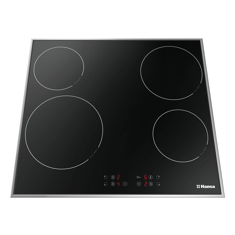 Hansa BHCI66306 – це електрична варильна поверхня шириною 57,5 см, що забезпечує комфортне приготування. Оснащена чотирма зонами нагріву, зокрема потужною конфоркою для швидкого розігріву. Гладка чорна склокерамічна поверхня легко очищується та доповнює інтер’єр кухні.